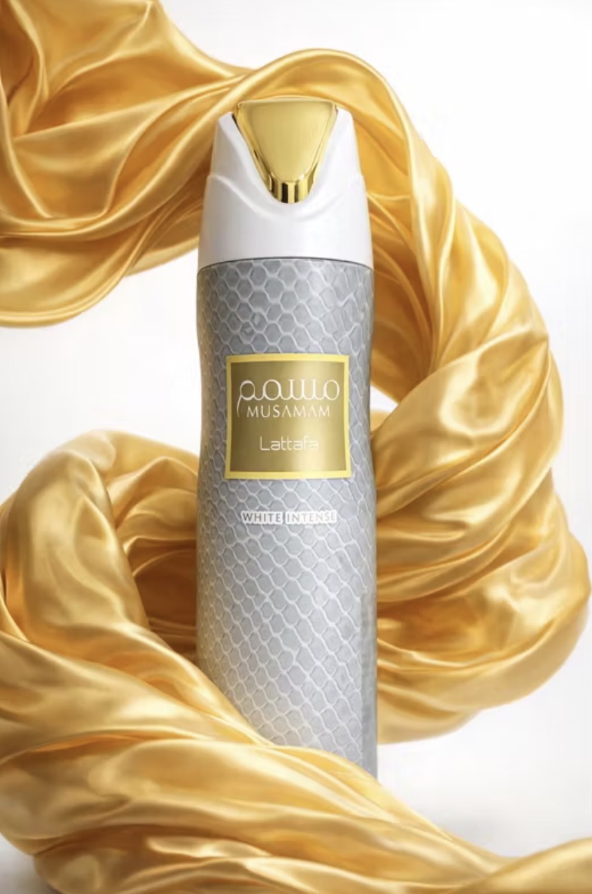 O Body Splash Musamam é a versão em spray corporal das fragrâncias da linha Musamam da marca árabe Lattafa, conhecida por seus frascos sofisticados com detalhes de cobra.