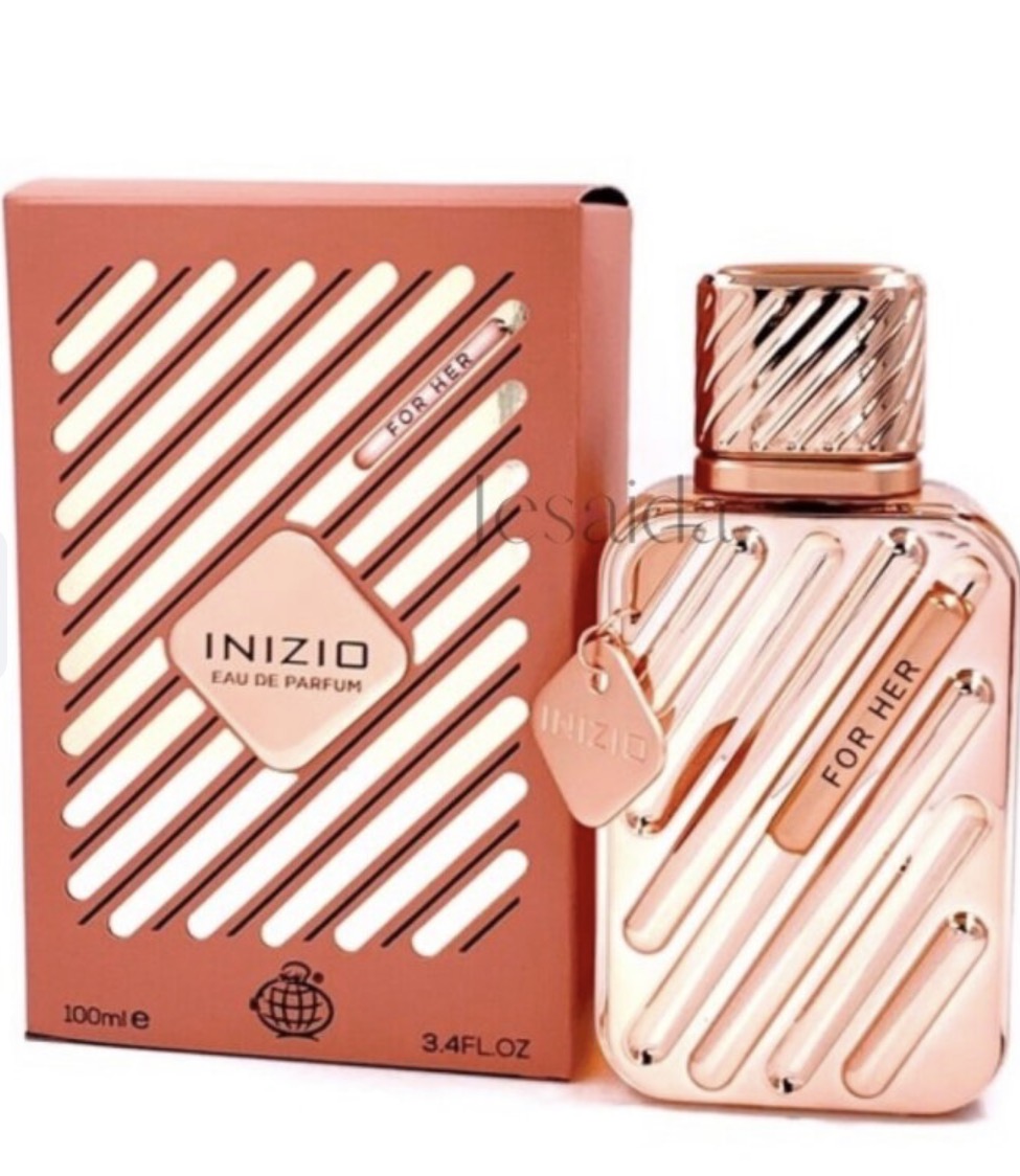 Inizio For Her de Fragrance World é um perfume Floral Frutado Gourmet Feminino. Esta é uma nova fragrância. Inizio For Her foi lançado em 2025. As notas de topo são: Laranja, Morango e Pera. As notas de coração são: Jasmim, Pêssego, Rosa e Pralinê. As notas de fundo são: Âmbar Cinzento, Baunilha, Musgo e Sândalo.