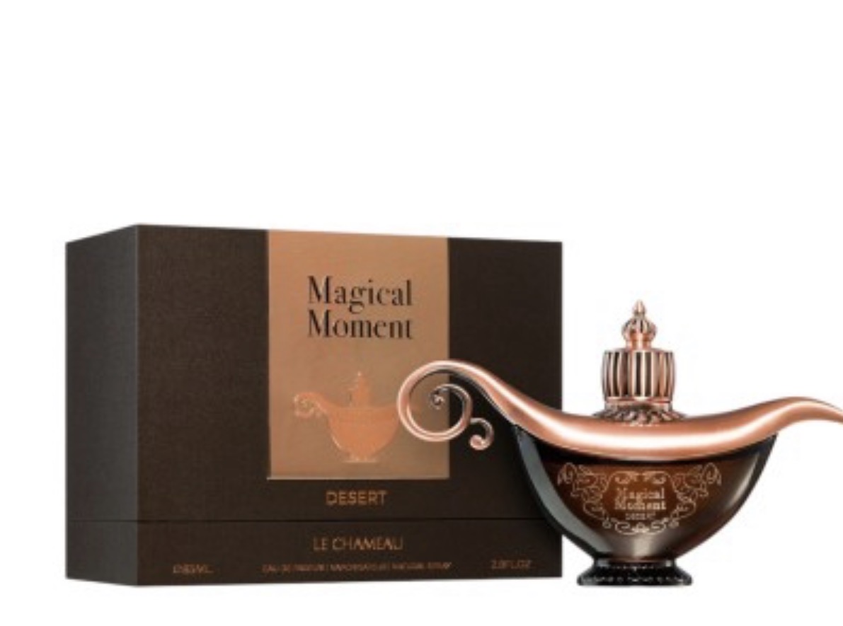 Magical Moment Desert de Emper (Le Chameau)é umafragrância compartilhável, intensa e misteriosa, lançada como parte de uma linha de luxo inspirada no Oriente. Com notas de rosa, açafrão, oud, almíscar e âmbar, é ideal para o inverno e noites especiais, oferecendo alta fixação e um perfil aromático sofisticado.