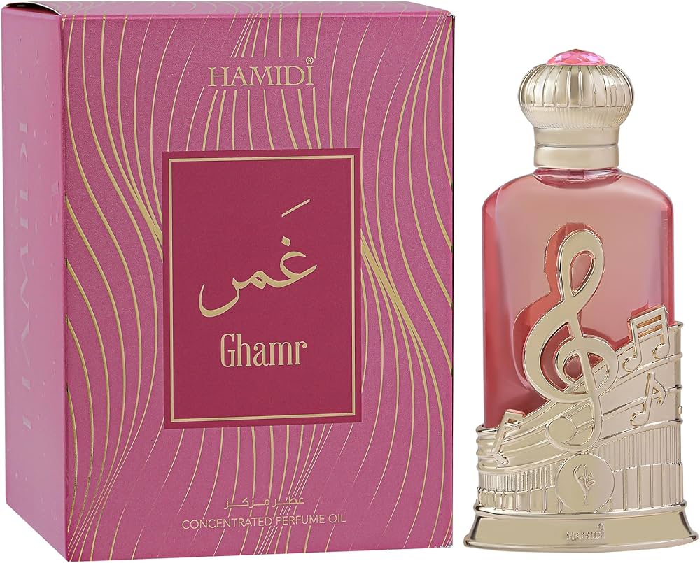 Hamidi Ghamr é um attar artístico e intensamente refinado. Com estilo oriental e toque sofisticado, este óleo perfumado sem álcool foi criado para durar horas na pele, mesmo em pequenas quantidades. Ideal para peles sensíveis e usos religiosos, sua composição unissexo revela uma presença marcante e envolvente. O frasco, decorado com detalhes dourados e elementos musicais, expressa a harmonia entre o luxo e a criatividade. Um perfume que transcende o tempo e o género, Ghamr é uma verdadeira assinatura olfativa.