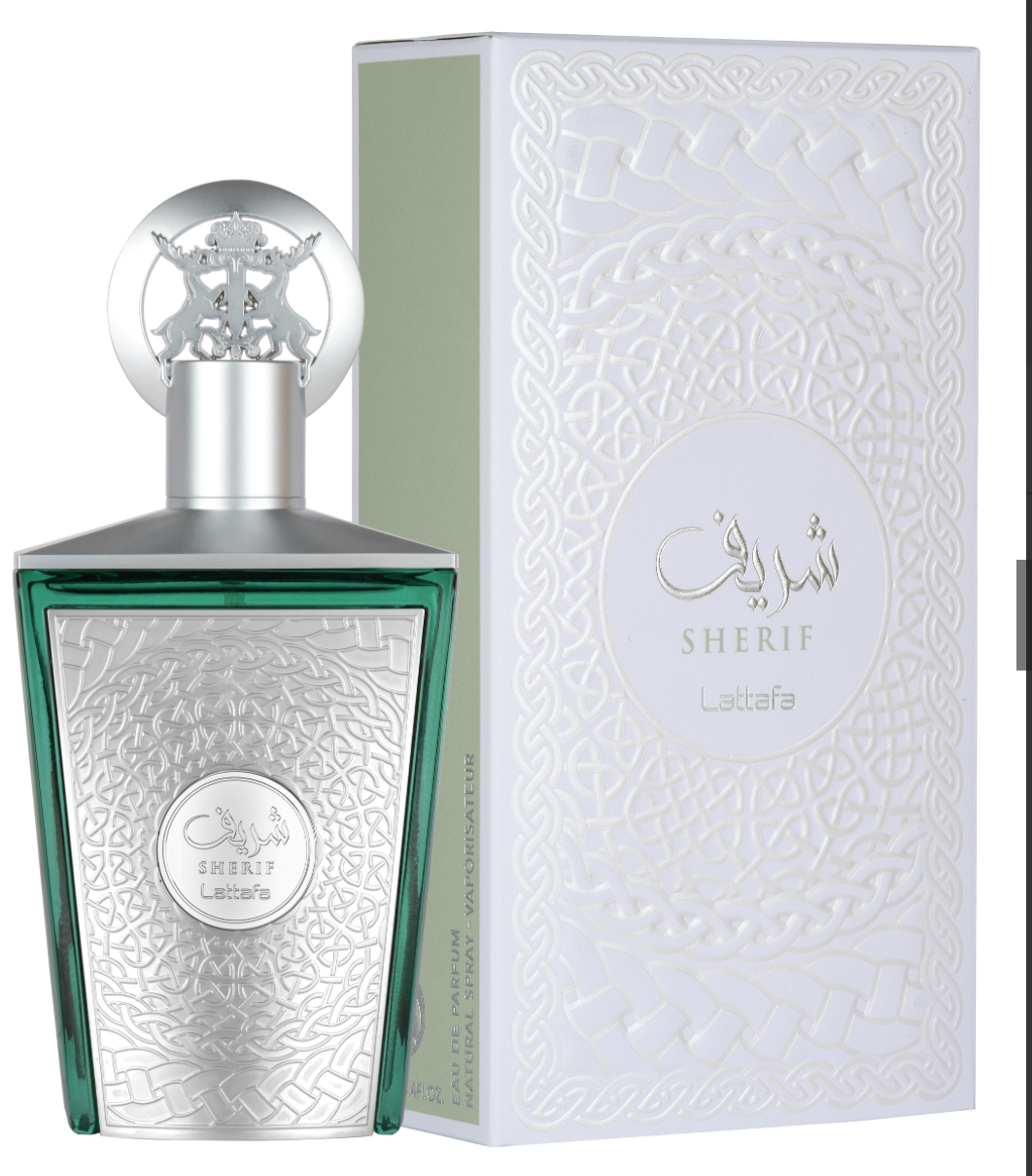 Sherif de Lattafa Perfumes é um perfume Amadeirado Aromático Masculino. Esta é uma nova fragrância. Sherif foi lançada em 2025. As notas de topo são: Maçã, Petitgrain e Bergamota. As notas de coração são: Cedro, Cashmeran e Violeta. As notas de fundo são: Musgo de Carvalho, Almíscar e Âmbar.
